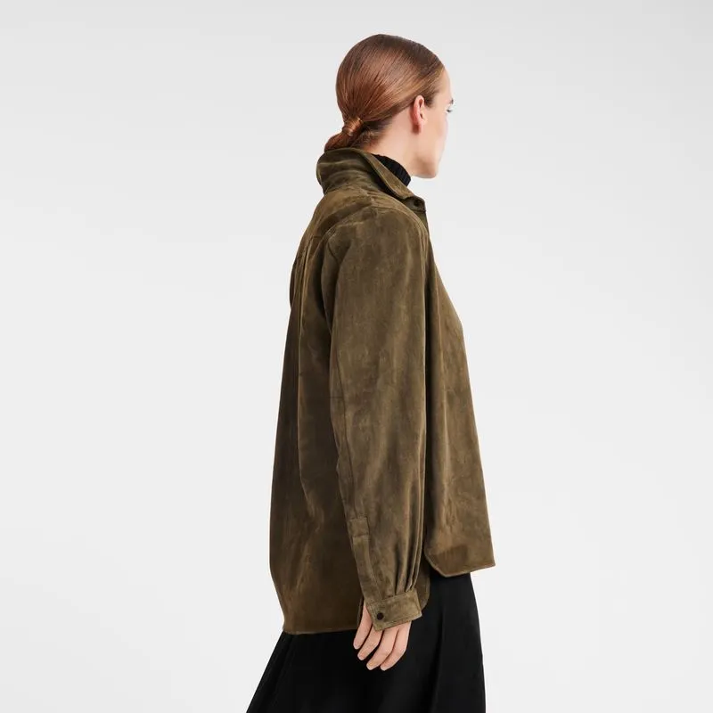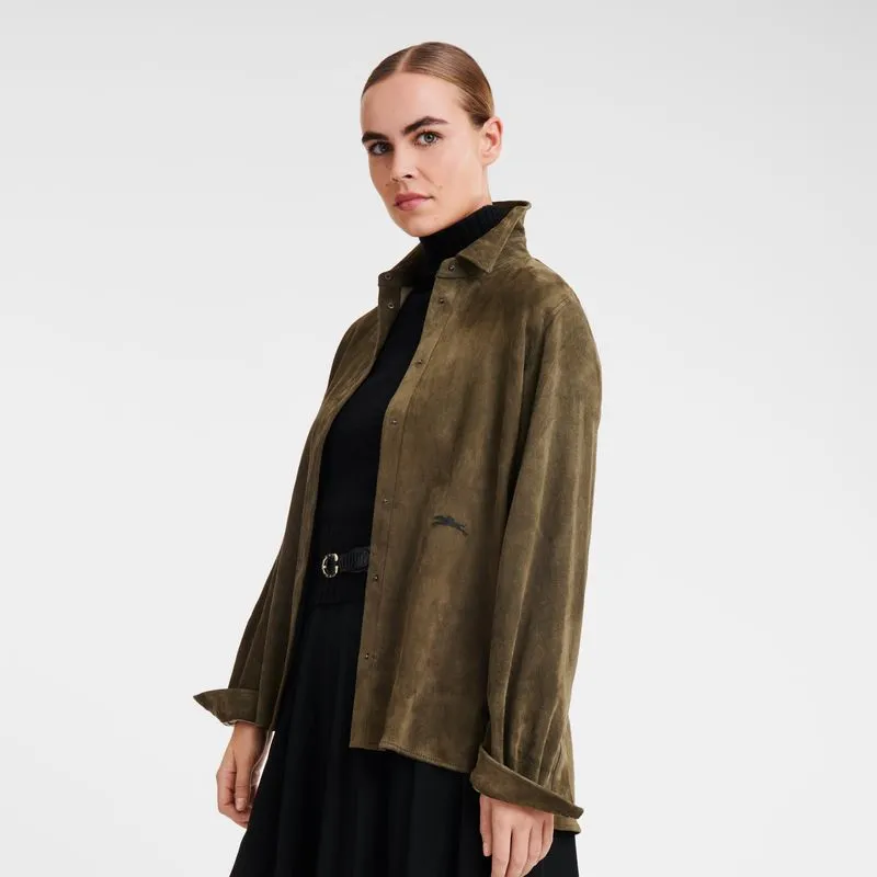Snap button closure with Longchamp logo